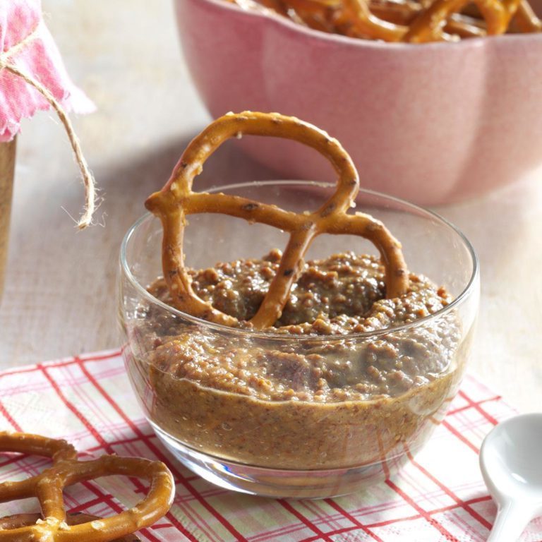 Hier ist ein Geschenk, das Biss hat! Dieser scharfe Biersenf passt hervorragend zu Brezeln oder als Gewürz für Bratwürste. - Taste of Home Test Kitchen