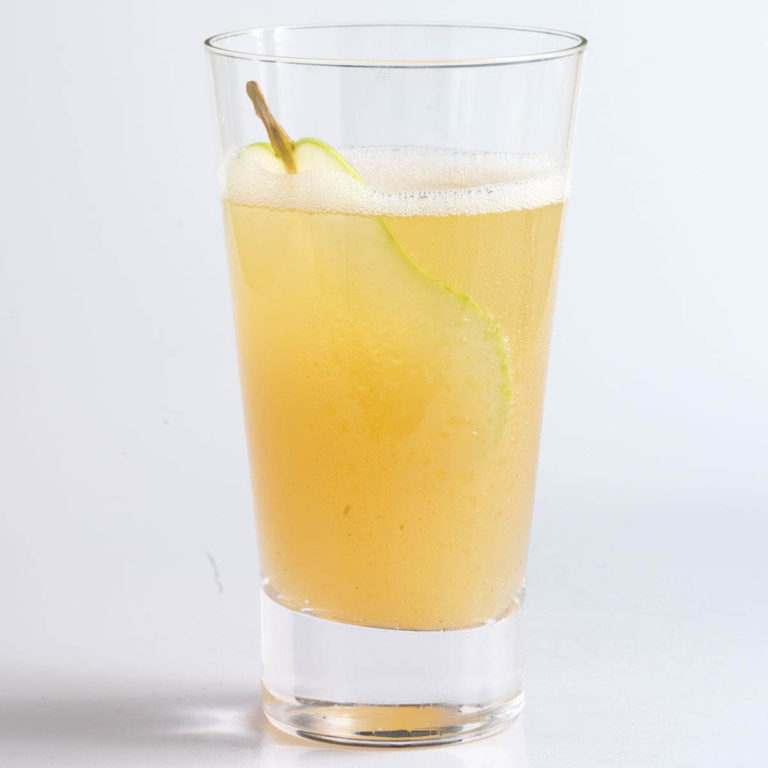 Kombinieren Sie in einem hohen Glas Ginger Ale und Birnennektar; mit Birnenscheibe garnieren..