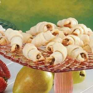"Ich habe diese halbmondförmigen Frischkäsekekse, die traditionell als" Rugalach "bezeichnet werden, für meinen jüdischen Schwiegersohn hergestellt", sagt Carolyn Hayes aus Marion, Illinois. "Wir alle liebten ihre wundervolle Textur. Die gewürfelten Birnen rollten darin auf sind unerwartete, reizvolle Überraschungen. "