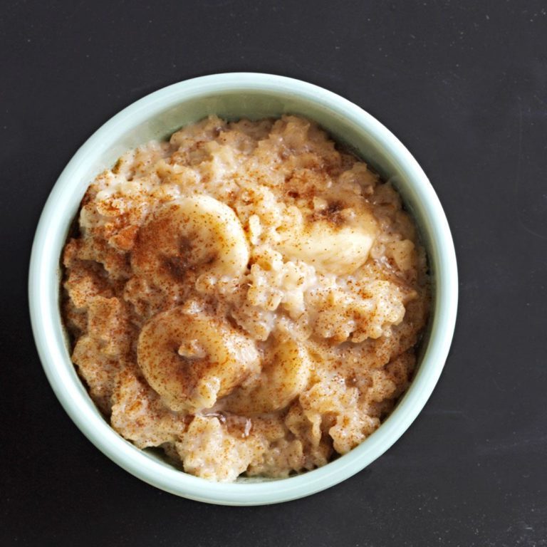Haferflocken ist ein Lieblingsfrühstücksessen, schnell, einfach und sättigend. Ich habe diese Version entwickelt, indem ich einige der gleichen Zutaten aus meinem Lieblingsfrühstücksmoothie verwendet habe. Kleiemüsli für einen kräftigeren Geschmack und mehr Ballaststoffe. Ein Ersatz für braunen Zucker und Sojamilch passen auch gut zusammen. - Jessi Rizzi, Odenton, Maryland