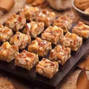 Süßigkeiten mit Folie aus der Pfanne heben; Verwerfen Sie die Folie. Schneiden Sie die Süßigkeiten in die Quadrate. Bewahren Sie sie in einem luftdichten Behälter im Kühlschrank auf.