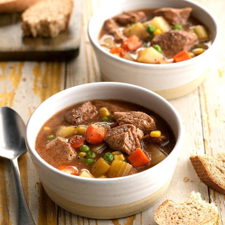 470 minSlow Cooker EintöpfeRindfleisch Eintopf Fleisch, Kartoffeln, Brühe, Saft, Sellerie-Rippen, Möhren, Zwiebel, Bucht, Salz-, Thymian, Chilipulver, Pfeffer, Maisstärke, Wasser, Mais, Erbsen,Crock Pot Rindfleischeintopf -