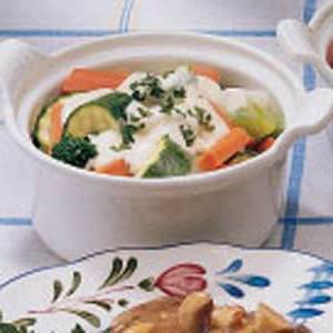 Über das Gemüse gießen. Mit Petersilie und Walnüssen bestreuen. Unbedeckt 20-25 Minuten bei 350 ° backen, bis die Soße sprudelt.