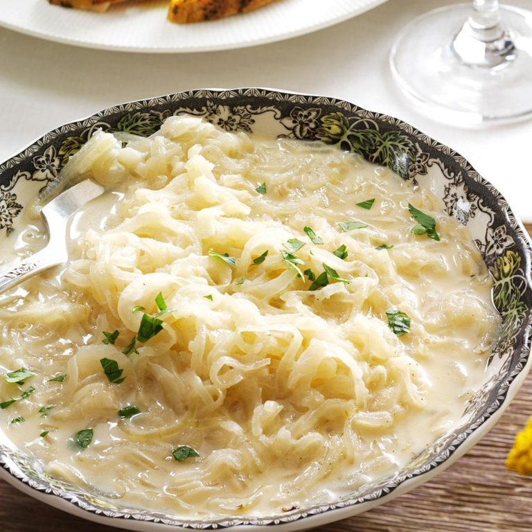 In Georgia, wo süße Vidalia-Zwiebeln König sind, mache ich große Portionen cremiger Zwiebeln als Beilage für gegrilltes Hähnchen und Rindfleisch. - Elaine Opitz, Marietta, Georgia