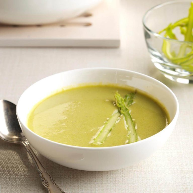 Mein Herz ist glücklich, wenn im Frühjahr in meinem Lebensmittelgeschäft zarte Spargelbündel aus der Region auftauchen. Niemand würde vermuten, dass diese vegetarische Suppe in Restaurantqualität in weniger als 30 Minuten zubereitet werden kann. - Cindy Beberman, Orland Park, Illinois