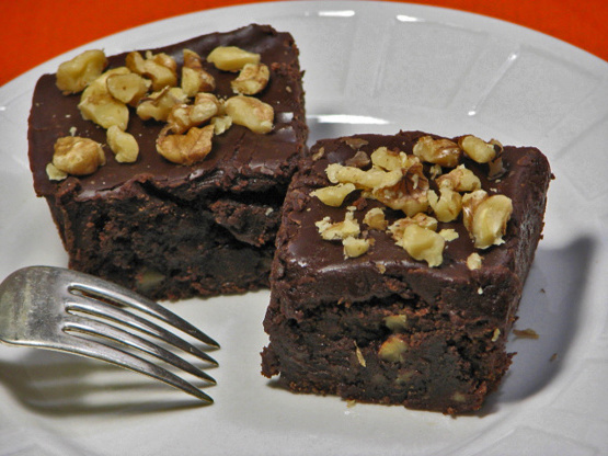 Dünn frostgekühlte Brownies, Kuchen in Brotgröße oder Cupcakes, solange die Glasur noch heiß ist, und, falls gewünscht, mit grob gehackten Nüssen garnieren.