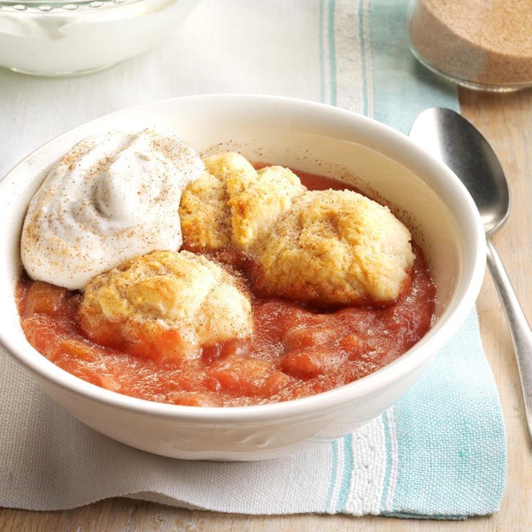 Ich habe dieses Rezept erfunden, nachdem ich gehört hatte, wie ein Freund sich liebevoll an die Rhabarberknödel seiner Großmutter erinnerte. Mein Sohn mag Rhabarber besonders, und dieses altmodische Dessert lässt diese besonderen Stiele die Hauptrolle spielen. Beverly Shebs, Pinehurst, North Carolina