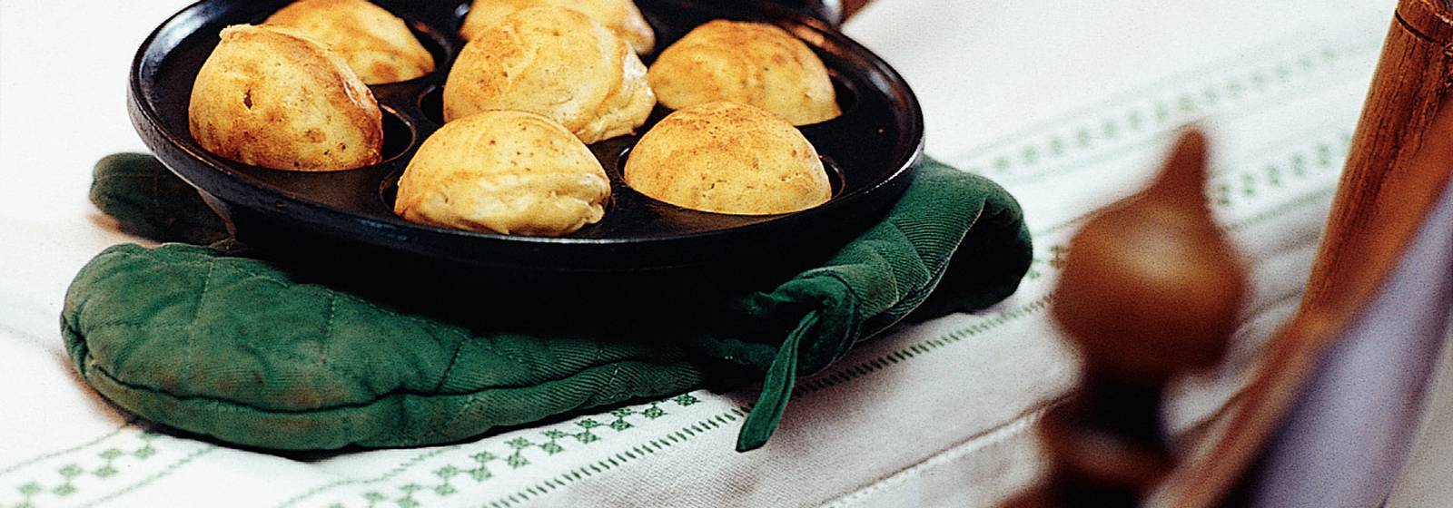 Ein leckeres holländisches Rezept. Die vegetarische Vorspeise enthält die folgenden Zutaten: friesischer Nagelkäse, Mehl, Backpulver, Salz, Milch, Eier (mittel), Brandy (Lakritze) und Öl zum Einfetten.