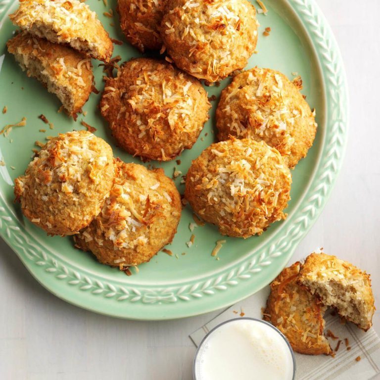 Dies ist eine Frühlingsvariation der Bananentropfenplätzchen meiner Großmutter, und mit Tonnen von Kokosgeschmack ist es perfekt für Ostern. - Elyse Benner, Solon, Ohio