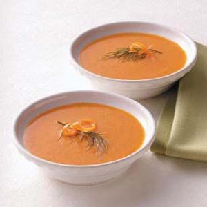 In einem großen Topf Karotten, Zwiebel und Reis in Butter kochen, bis die Zwiebel weich ist. Brühe, Wasser, Orangensaft, Dill, Orangenschale, Salz, Majoran, Thymian, Rosmarin, Salbei und Pfeffer zum Kochen bringen .Hitze reduzieren; abdecken und 20-25 Minuten köcheln lassen oder bis Karotten und Reis weich sind. 10 Minuten abkühlen lassen