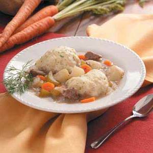 Probieren Sie diesen wohlschmeckenden Eintopf vom Chefredakteur Bernadine Dirmeyer aus Upper Sandusky, Ohio. Die Kombination aus flauschigen, gut gewürzten Knödeln und zartem Fleisch und Gemüse ist so gut, dass Sie sie den Gästen servieren möchten.