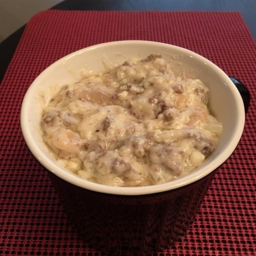Dies ist eine schnelle und einfache Möglichkeit, Rinderhackfleisch aufzurühren. Es verwendet Milch anstelle von Sahne, zusammen mit einer Vielzahl von Gemüse. Servieren Sie Toast oder Kekse und probieren Sie es mit hart gekochten Eiern.