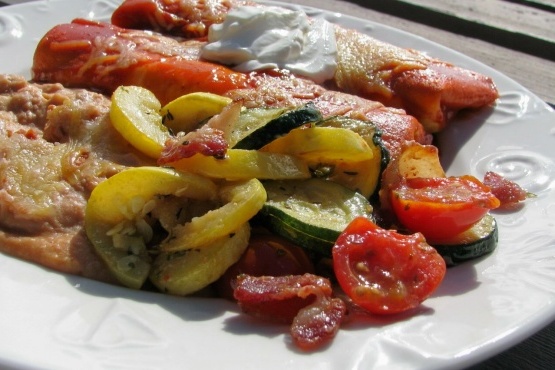 Bilden Sie und teilen Sie dieses Rezept des sautierten Kürbises und der Tomaten von.